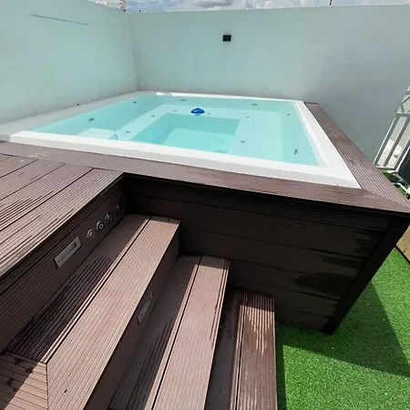 Apartamento Con Terraza Y Jacuzzi Privado har balkong, luftkonditionering och tvättmaskin, samt utsikt över trädgården.